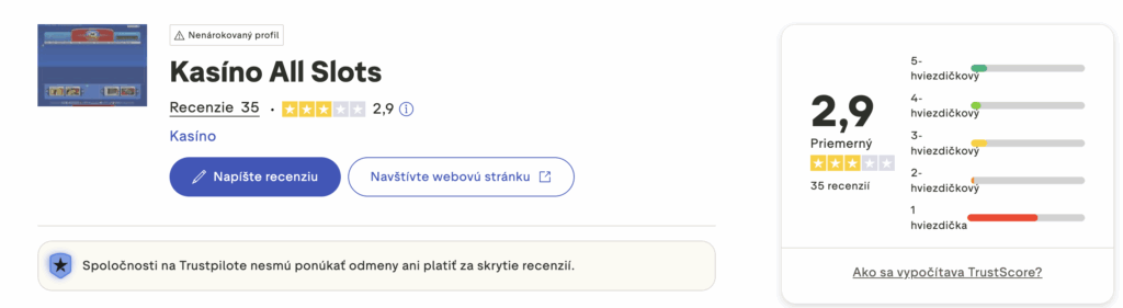 Z analytického hľadiska má All Slots Casino silnú online viditeľnosť, čo potvrdzuje viac ako 81 miliónov výsledkov vo vyhľadávaní Google, zatiaľ čo nízky záujem v Google Trends na Slovensku poukazuje na potenciál pre rast v regióne. Celkovo ide o renomovanú a transparentnú platformu vhodnú pre serióznych hráčov, ktorí hľadajú stabilné, licencované a technicky vyspelé prostredie na online hranie.