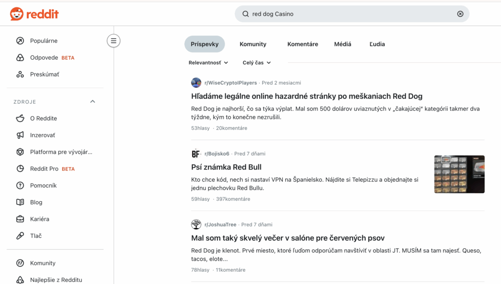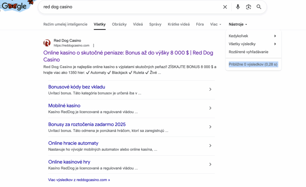Pre porovnanie – čím viac výsledkov vo vyhľadávaní má značka, tým je vnímaná ako dôveryhodnejšia a známejšia. V tomto prípade je preto možné povedať, že Red Dog Casino má zatiaľ nízku trhovú známosť na Slovensku, no zároveň aj potenciál pre rast viditeľnosti, ak by rozšírilo svoju komunikáciu a marketingové aktivity.
