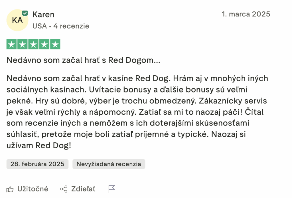 Používatelia pozitívneho a negatívneho hodnotenia Red Dog kasína?