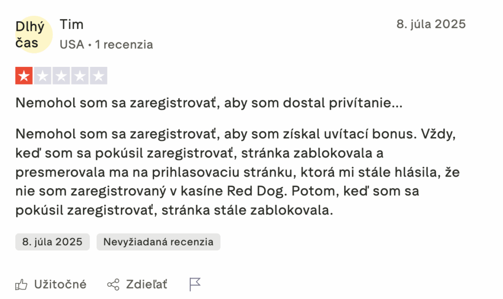 Na základe dostupných recenzií má kasíno Red Dog veľmi zmiešanú reputáciu. Negatívne hodnotenia poukazujú na technické problémy s registráciou, zablokované účty po žiadosti o výber a nejasné bonusové podmienky, čo môže pôsobiť nedôveryhodne. Niektorí hráči opisujú skúsenosti ako sklamanie a spomínajú oneskorené reakcie zo zákazníckeho servisu.