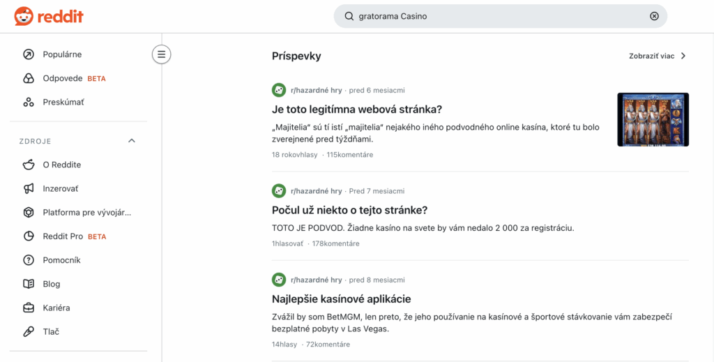 Čo sa hovorí o Gratorama kasíne na Reddite?