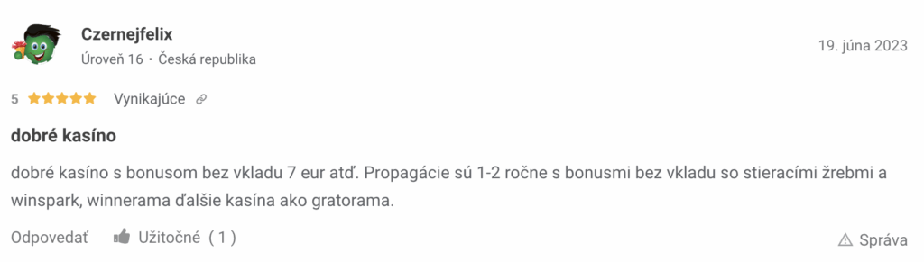 Používatelia pozitívneho a negatívneho hodnotenia Gratorama kasína?
