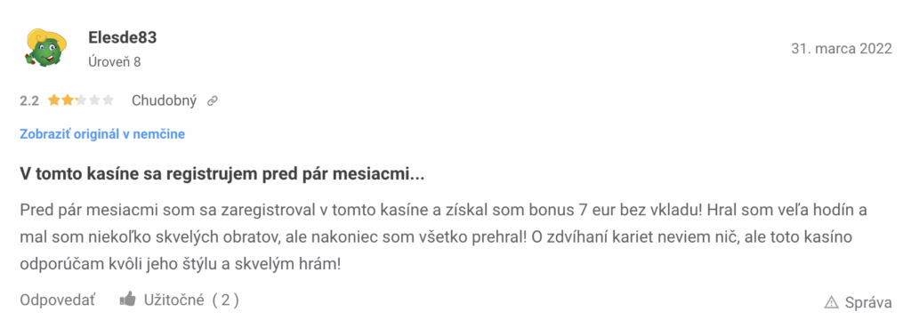 | Bonusy | 7 € bez vkladu, free spiny v hodnote 7 € | Bonusy sú dostupné, ale ich reálne podmienky a výhry sú často nejasné. |
