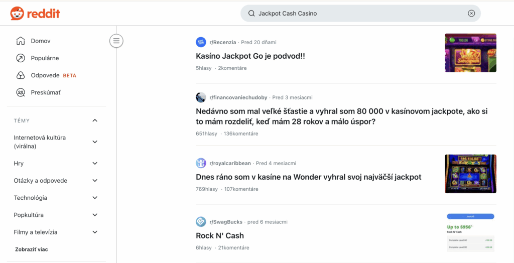 Na základe prehľadu výsledkov vyhľadávania na platforme Reddit v kontexte “Jackpot Cash Casino” môžeme dospieť k nasledujúcim záverom. V priamych výsledkoch sa nachádza obmedzený počet konkrétnych recenzií kasína “Jackpot Cash Casino”. Kľúčovým zistením je silne negatívny príspevok z r/Recenzia (Pred 20 dňami) s titulkom: “Kasíno Jackpot Go je podvod!!“. Hoci sa titulok vzťahuje na “Jackpot Go” (nie priamo “Jackpot Cash”), ide o najkonkrétnejší a najnovší signál, ktorý potenciálne naznačuje podvodné správanie v blízkej skupine kasín.