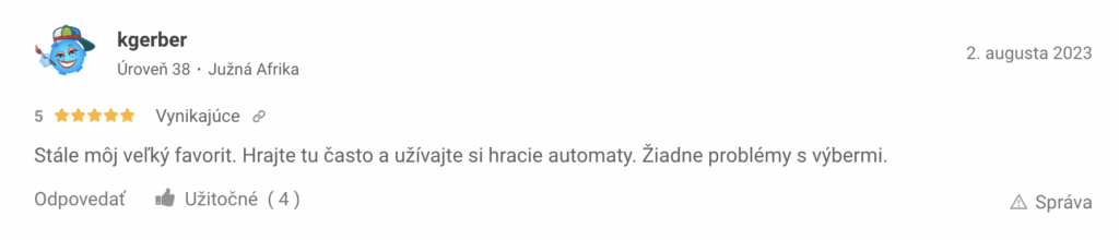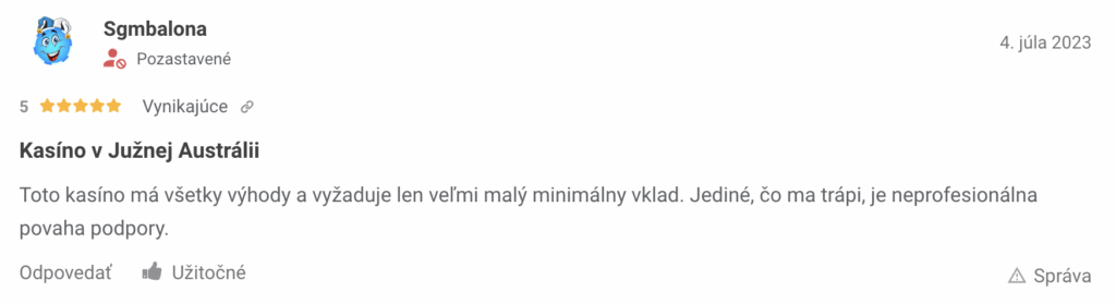 Na druhej strane viacerí hráči hodnotia kasíno pozitívne – oceňujú jednoduché vklady, spoľahlivé výbery a férové podmienky. Pochvaly sa opakujú najmä v súvislosti so stabilitou výplat a nízkymi minimálnymi vkladmi, čo z neho robí prístupné kasíno pre bežných hráčov. Niektorí síce upozorňujú na menej profesionálnu podporu, ale to neovplyvnilo ich celkový pozitívny dojem.