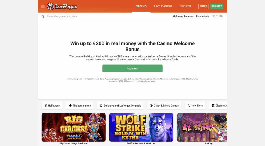 Hry1 500+ slotov, stolové hry, bingo, Live Casino, LeoVegas OriginalsSilná ponuka, prehľadné kategórie a vyhľadávanie.