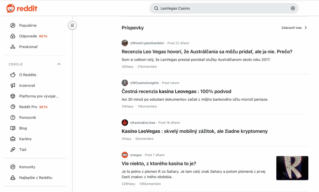 Čo sa hovorí o LeoVegas kasíne na Reddite?