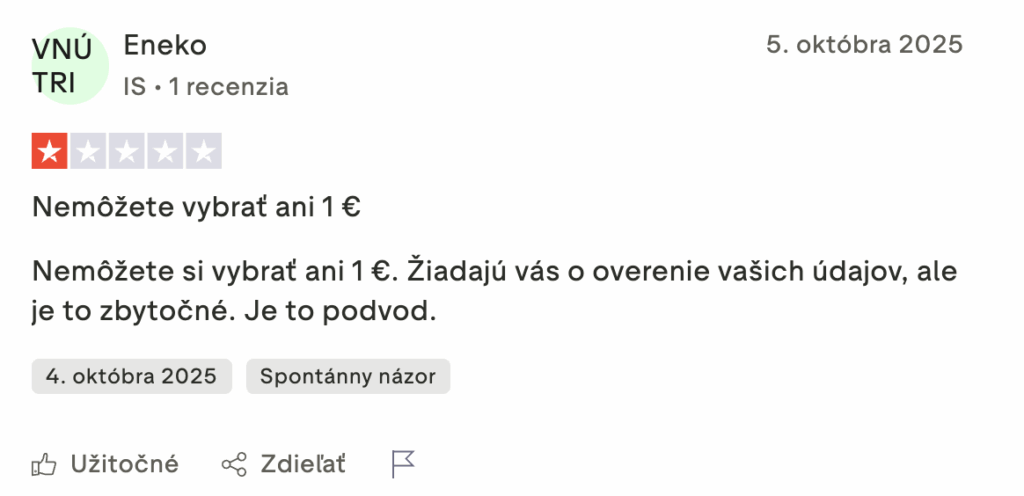 Negatívne skúsenosti sa týkajú hlavne procesu overenia a výberov, ktorý môže pôsobiť zdĺhavo alebo komplikovane. Niektorí používatelia vnímajú proces ako zbytočne byrokratický, čo však býva bežná prax vo väčšine licencovaných online kasín.