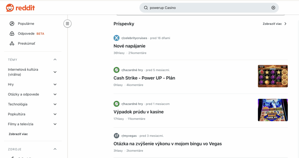 Ako analytik musím konštatovať, že na platforme Reddit nebola zistená žiadna relevantná diskusia, recenzia, sťažnosť, ani iná komunikačná stopa týkajúca sa online Kasína PowerUp. Všetky príspevky sú buď všeobecné, týkajú sa iných herných systémov, alebo hovoria o kamenných kasínach.