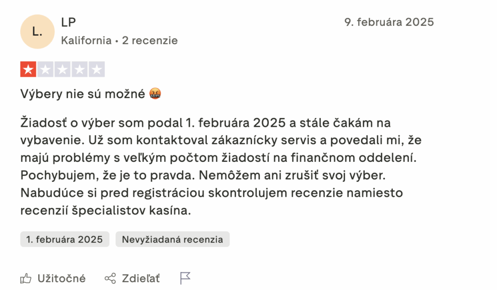 Na druhej strane, niekoľko negatívnych skúseností upozorňuje na oneskorené výbery a problémy s uzamknutými účtami, čo môže byť pre hráčov frustrujúce. Tieto prípady však predstavujú individuálne situácie, ktoré nemusia odrážať celkový obraz kasína.