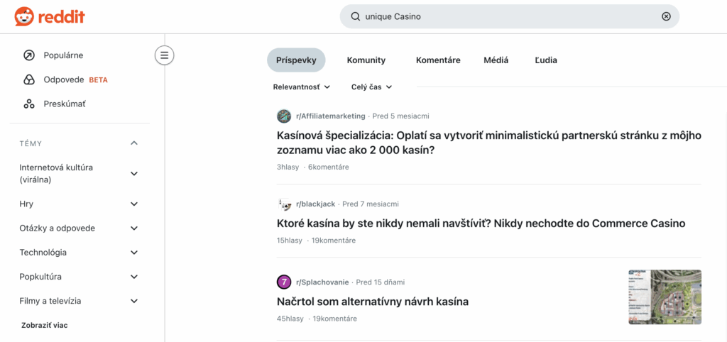 Z vykonanej analýzy musím konštatovať, že na platforme Reddit neexistuje žiadna relevantná informačná stopa o Kasíne Unique. Žiaden z príspevkov neobsahuje priame recenzie, sťažnosti, pochvaly, mená užívateľov s osobnou skúsenosťou, ani dátumy spojené s týmto konkrétnym online kasínom. Diskusie sú všeobecné alebo sa týkajú iného subjektu.