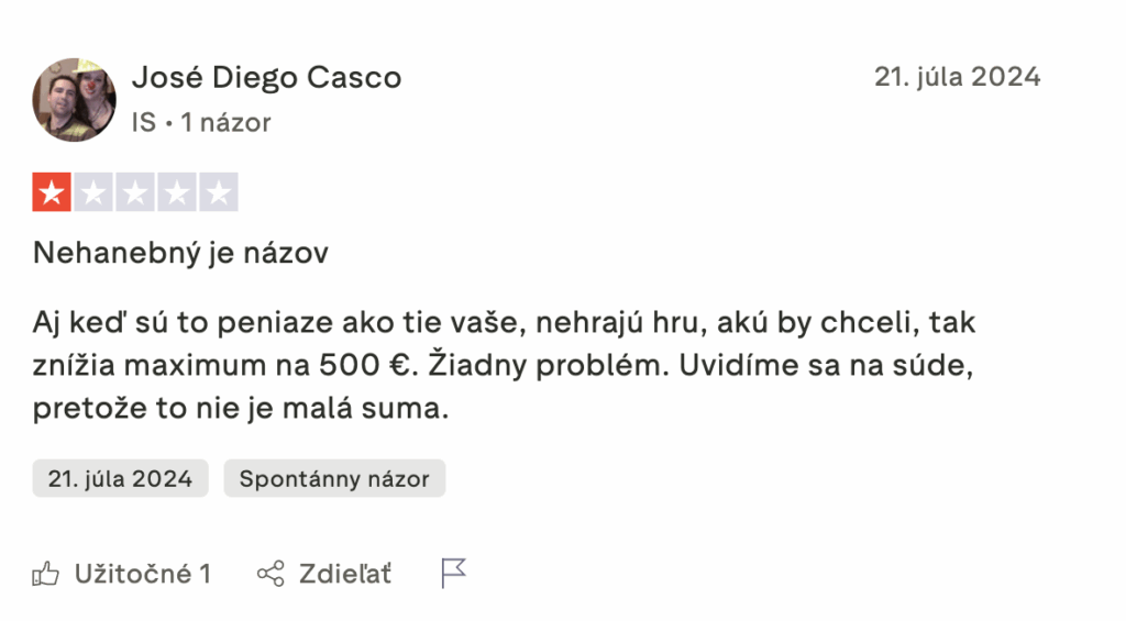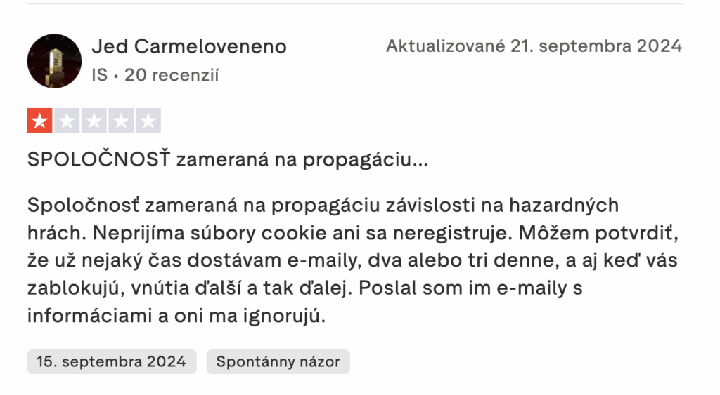 | Sťažnosti hráčov | 14 priamych a 20 nepriamych sťažností – spolu takmer 60 000 negatívnych bodov. Časté problémy s výplatami a zadržiavaním výhier. |
