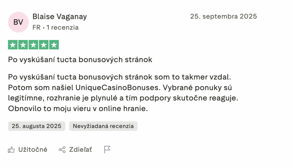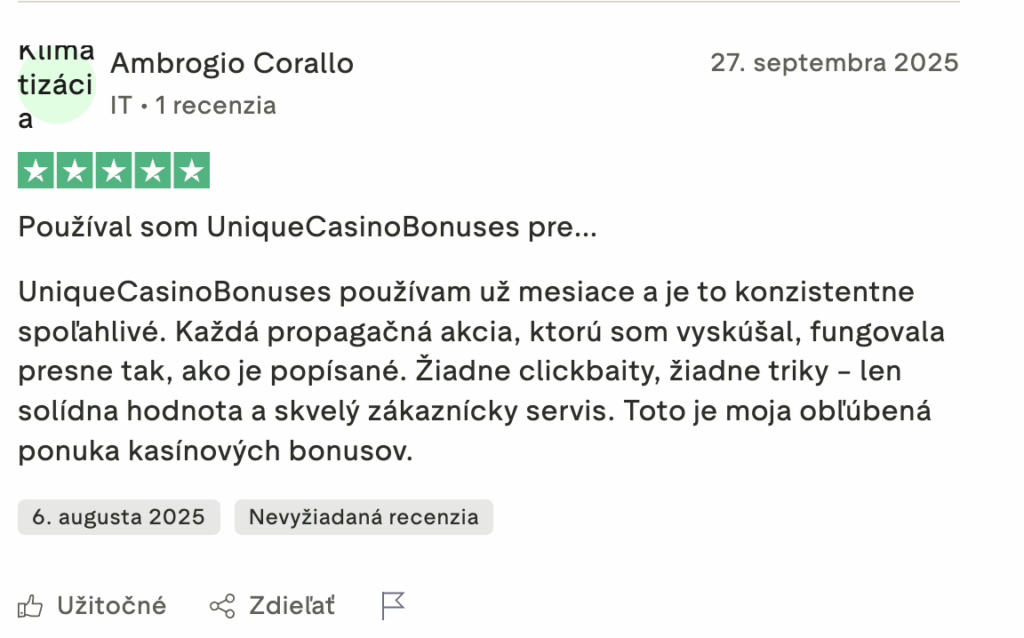 Unique Casino pôsobí ako atraktívna a moderná platforma s bohatou ponukou hier, kvalitnými poskytovateľmi a vizuálne prepracovaným webom, no zároveň zostáva vysoko rizikovým operátorom kvôli absencii licencie a nízkemu indexu dôveryhodnosti. Napriek širokej škále platobných možností, dostupnosti kryptomien a profesionálnej podpore nemožno ignorovať množstvo hráčskych sťažností a veľmi nízke limity výberov, ktoré môžu negatívne ovplyvniť používateľský zážitok. Celkovo je Unique Casino vhodné len pre skúsených hráčov, ktorí sú si vedomí rizík nelicencovaných platforiem a hrajú zodpovedne, zatiaľ čo bežným hráčom sa odporúča voliť kasína s overenou reguláciou a vyššou úrovňou transparentnosti.