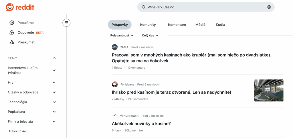 Z vykonanej analýzy musím konštatovať, že na platforme Reddit neexistuje žiadna relevantná informačná stopa o Kasíne WinsPark. Žiadny z príspevkov neposkytuje priame recenzie, sťažnosti, pochvaly ani mená užívateľov s osobnou skúsenosťou s týmto operátorom. Diskusné vlákna sú buď všeobecné (AMA krupiéra), alebo sa týkajú iných, kamenných kasín.